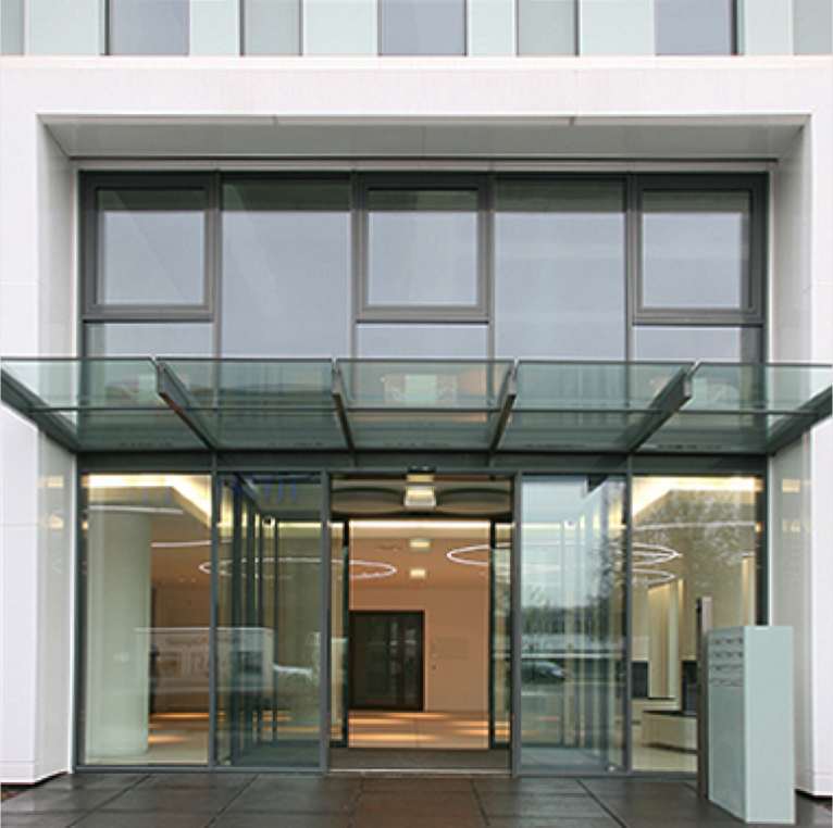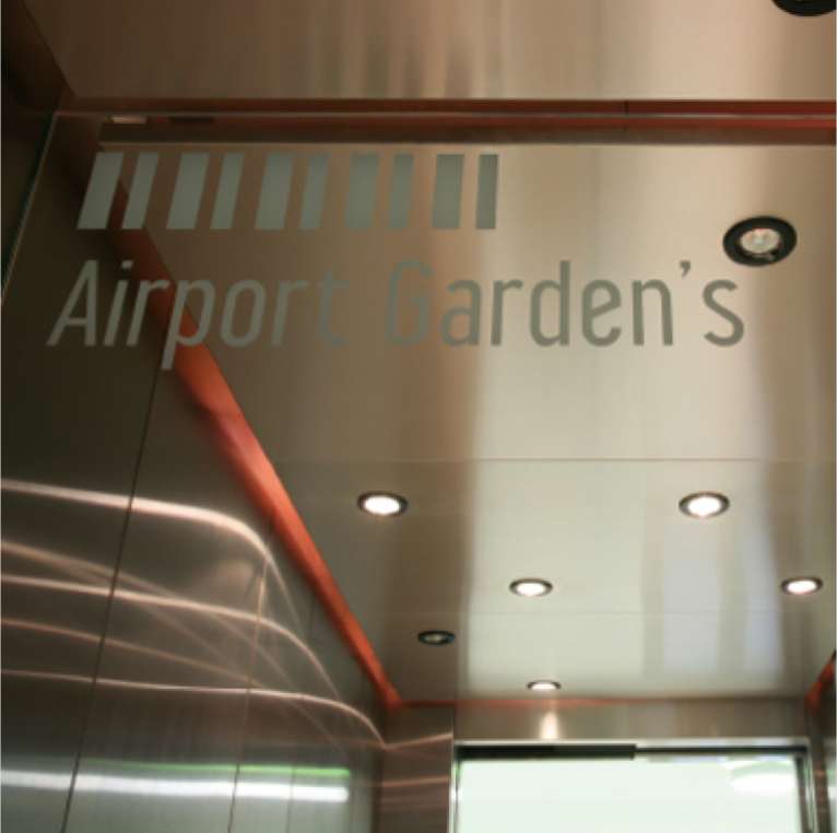 Für das Bürogebäude mit 13300 qm Mietfläche in der Düsseldorfer AirportCity hat Friedhelm Kuche 360 die beiden Foyers und alle öffentlichen Bereiche von der Tiefgarage bis zur Mieterfläche entworfen und in der Ausführung begleitet. Die Foyers, die das Thema „Airport“ und „Garden“ anhand abstrahierter, leuchtender Baumkronen abstrakt widerspiegeln, erhielten bildhafte Unterstützung durch gläserne Bildtafeln: Große weiße Jets sind wie Zugvögel im Park gelandet und ruhen im Schatten der Bäume.